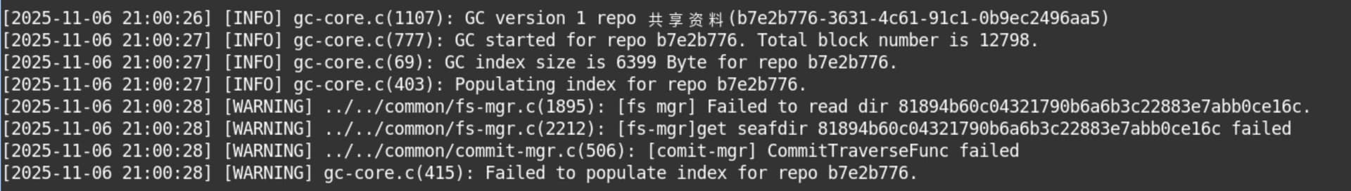 这个应该是资料库有损坏,可以使用FSCK修复下seafile-manual-cn