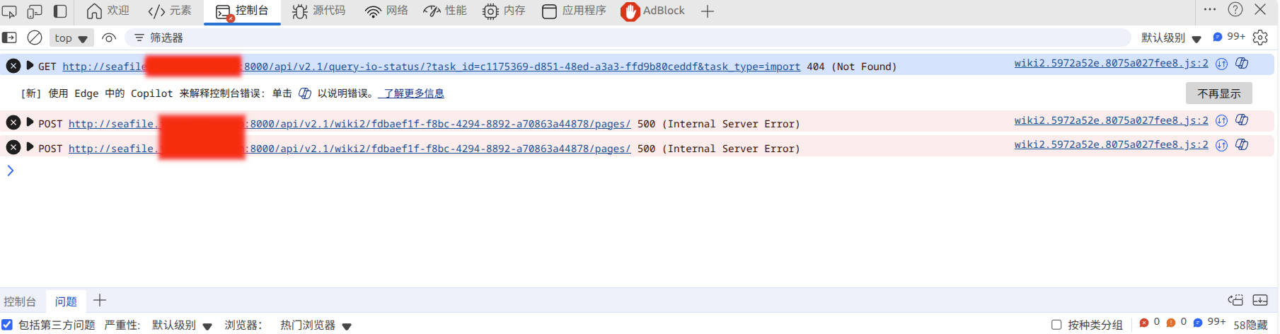 这个是因为首次访问 wiki 的时候,seahub 需要通过 http://seafile.xxxxxxx.com:8000/seafhttp 来创建一个空页面。本地访问 http://seafile.xxxxxxx.com:8000/seafhttp 目前出现了连通的问题。