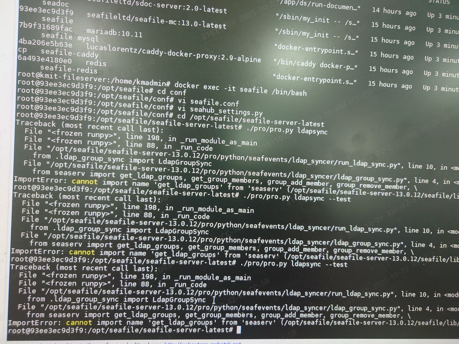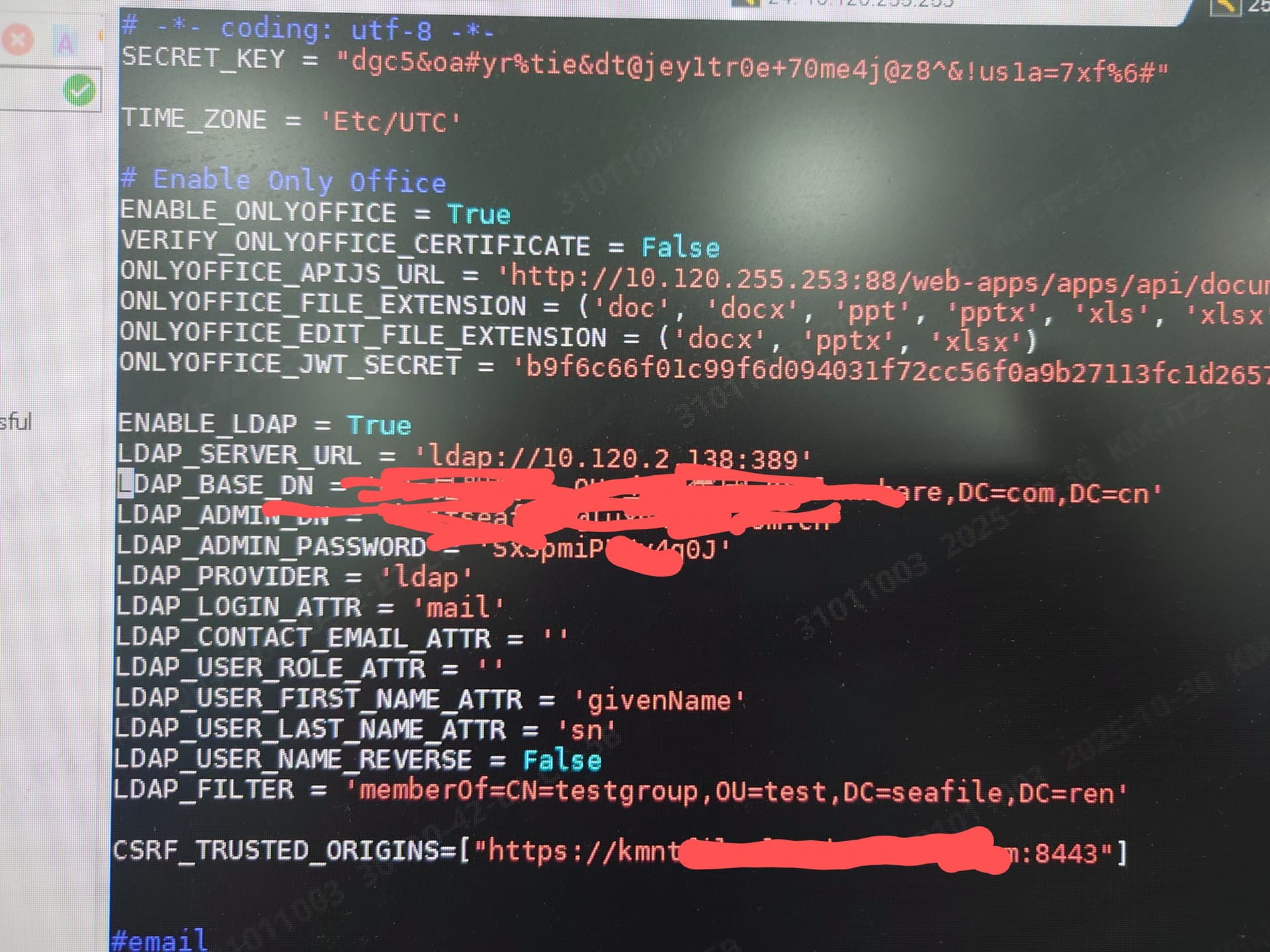 配置项不缺,但不能确定是否正确。可以进入Seafile容器里执行ldapsearch -LLL -H “${LDAP_SERVER_URL}” -D “${LDAP_ADMIN_DN}” -w “${LDAP_ADMIN_PASSWORD}” -b “${LDAP_BASE_DN}” -x “${LDAP_FILTER}”(启用了TLS需再添加“-Z”参数),需要能够搜索出结果。