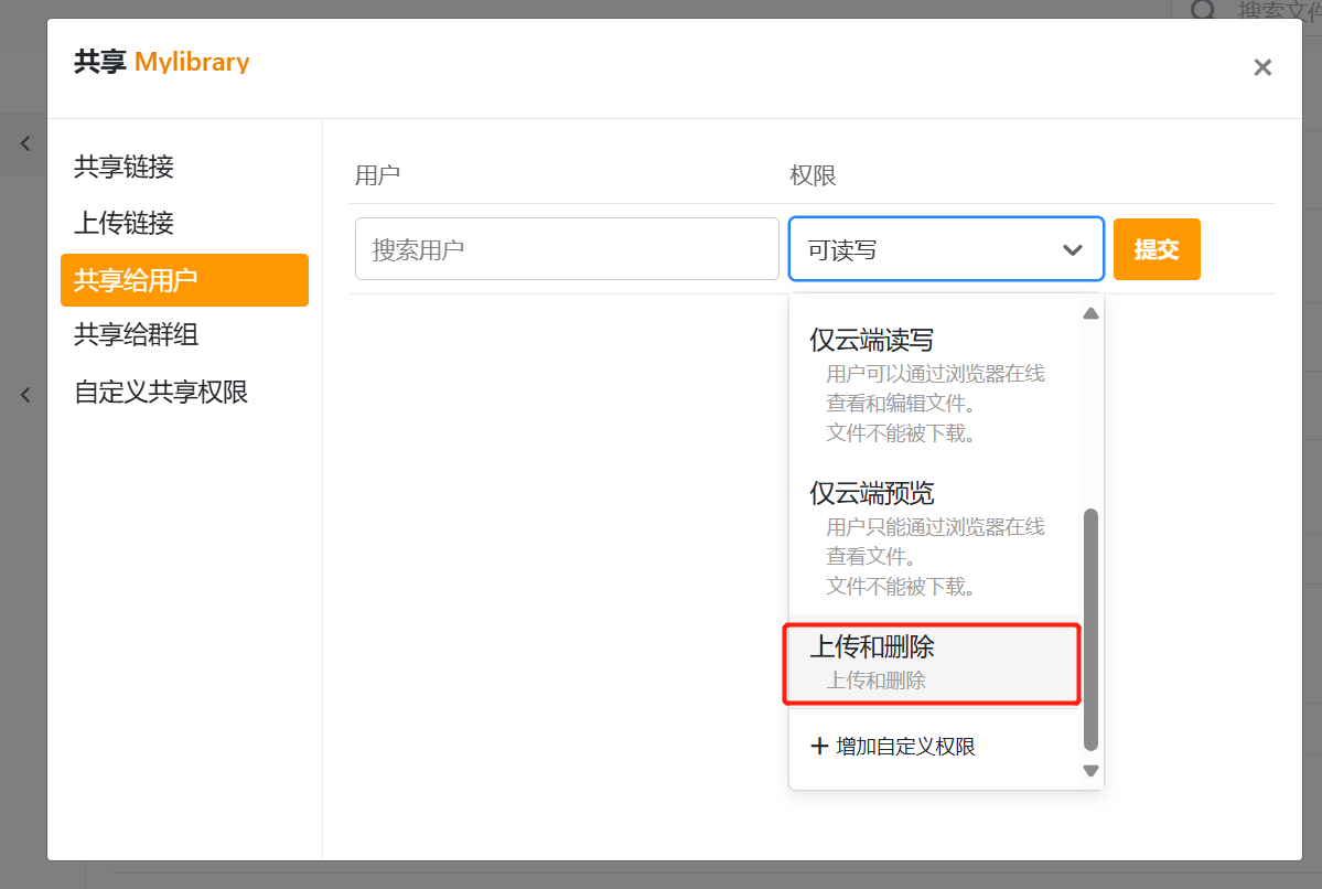 可以配置权限或使用自定义权限: