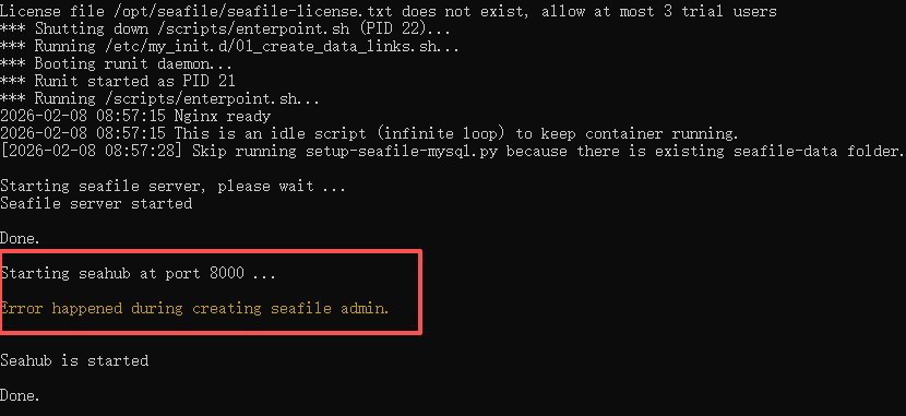 Error happened during creating seafile admin.